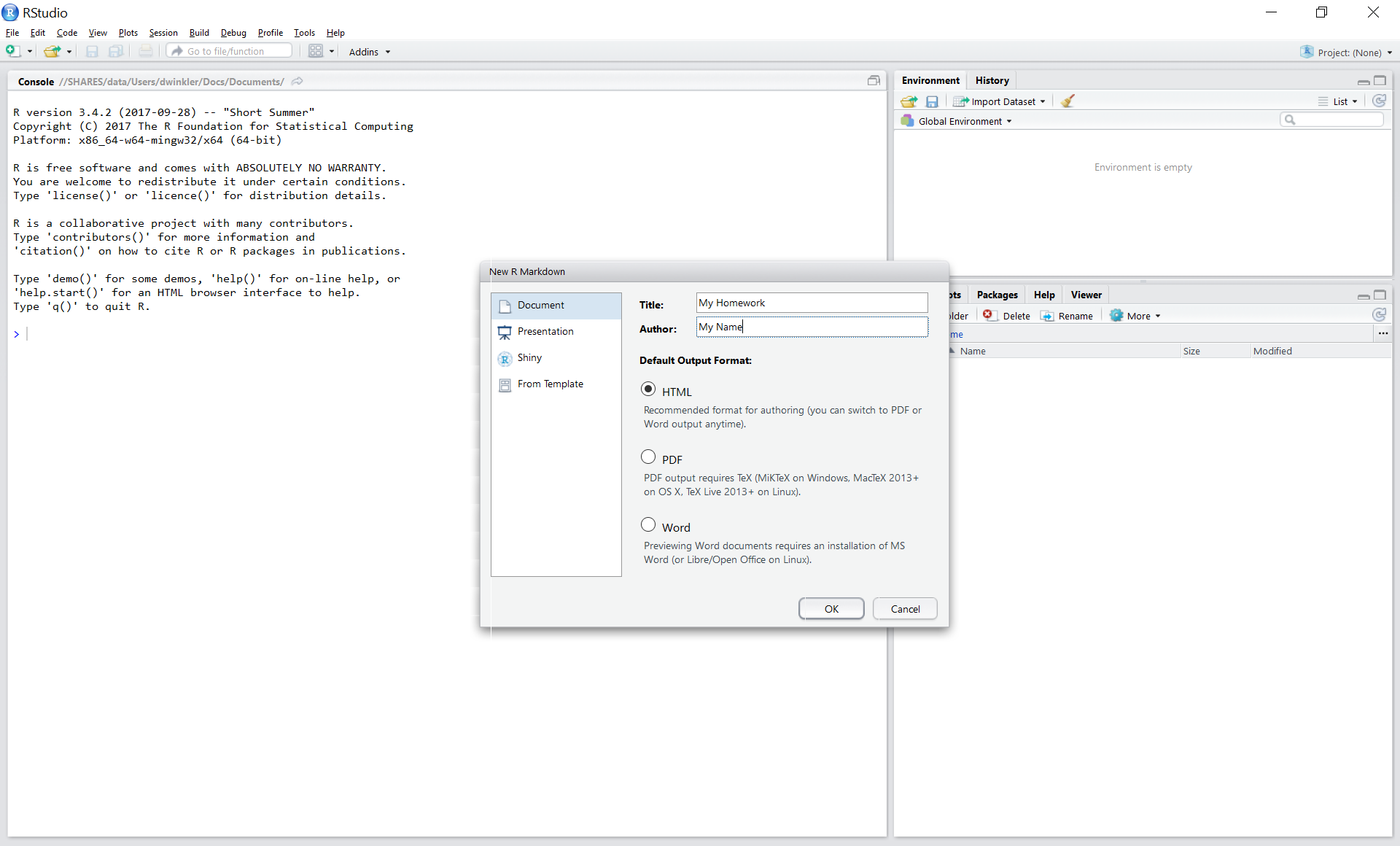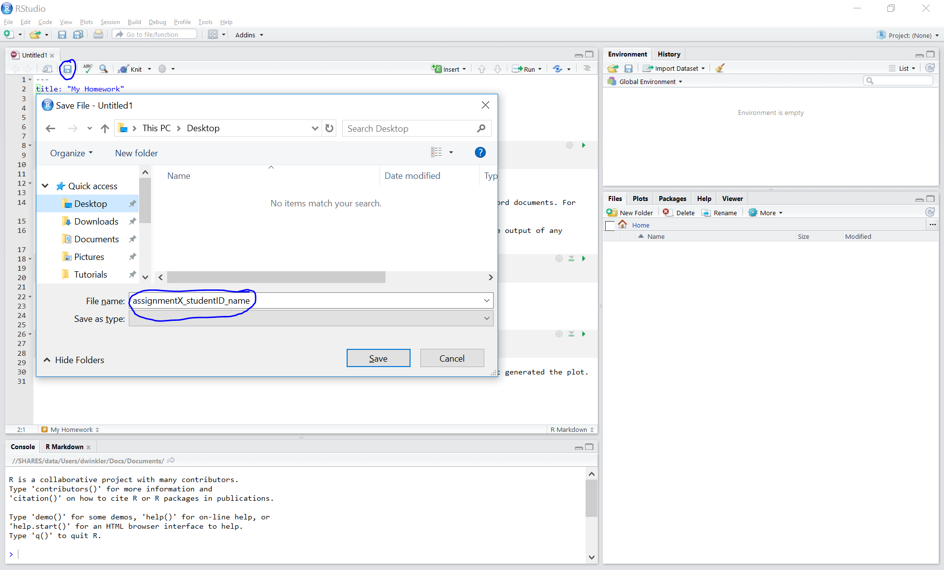 If an R-Markdown file was provided to you, open it with R-Studio and skip to step 4 after adding your answers.