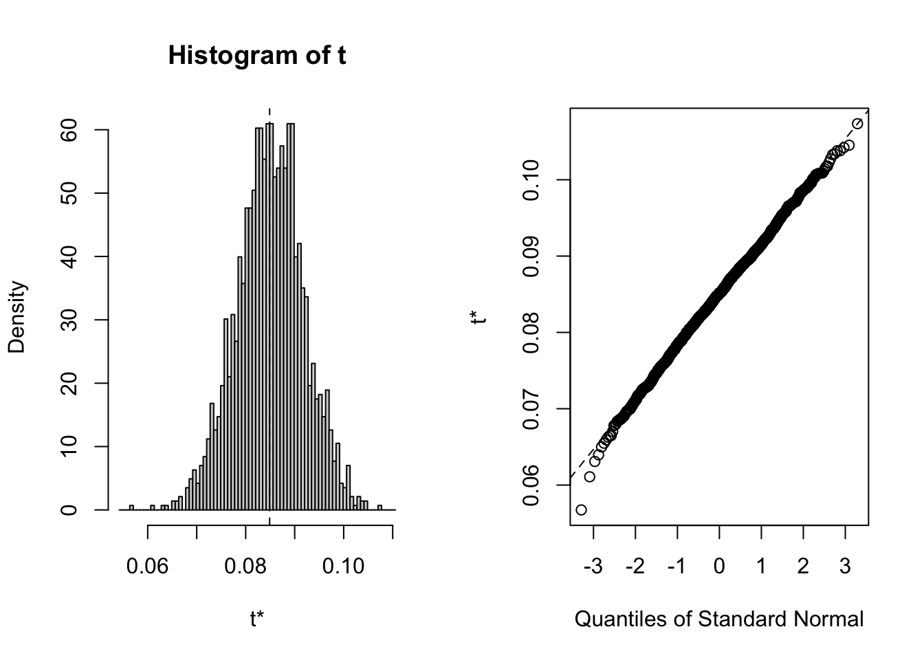 ## t = 8.41443, df = 10, p-value = 0.0000075452