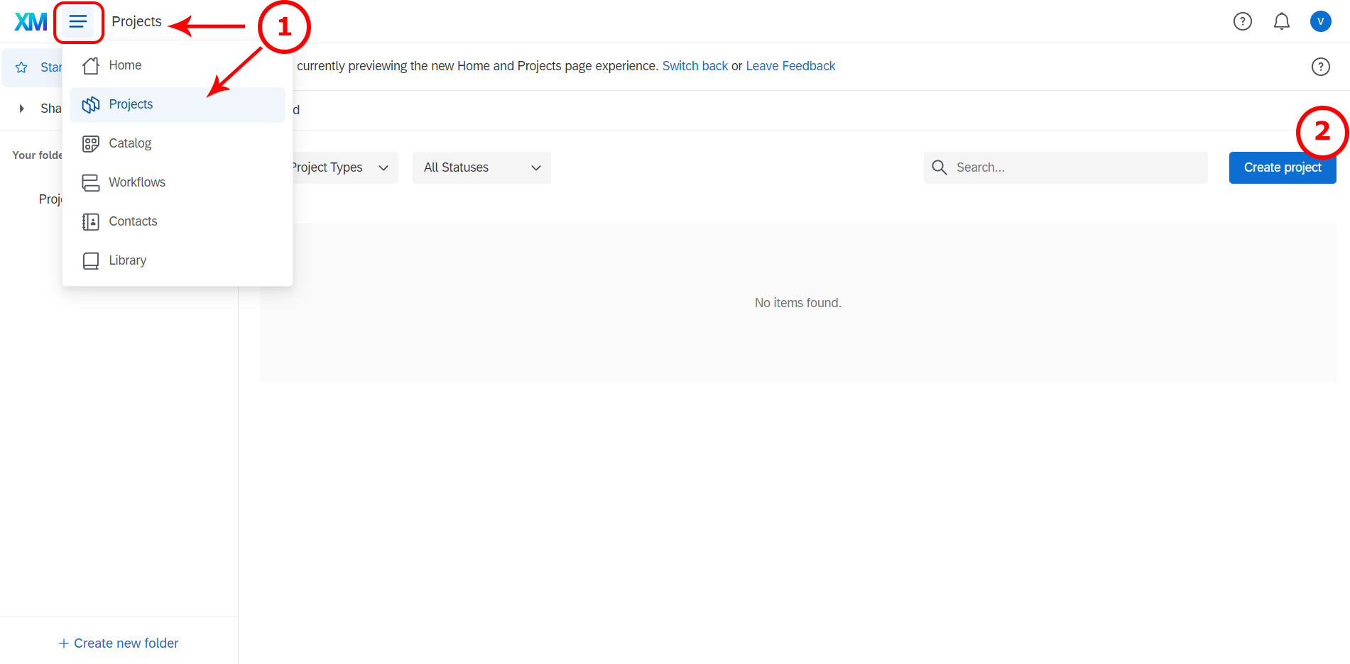 Go to the Projects page by clicking “Projects” next to the XM logo