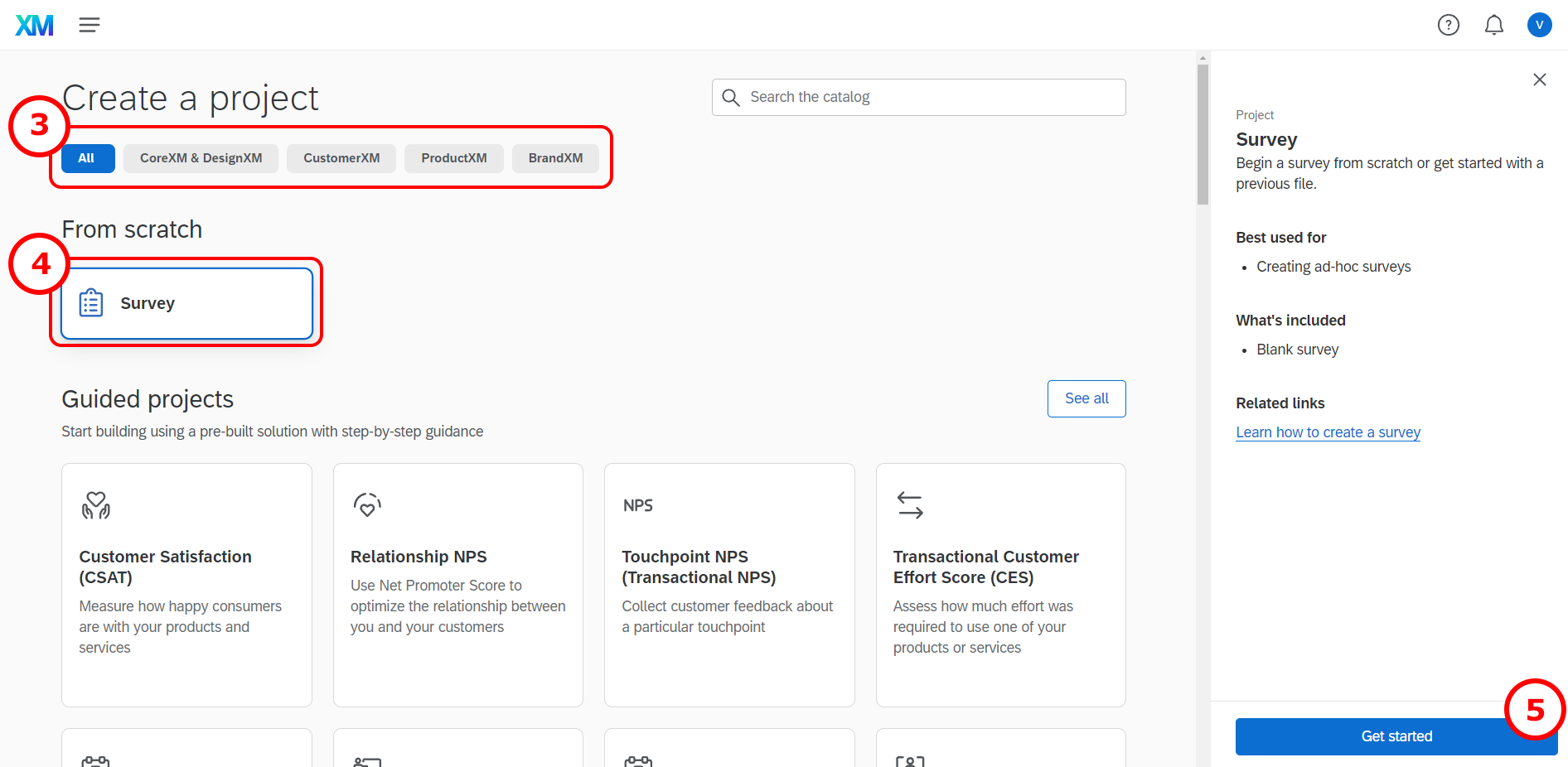 - Enter a name for your survey and get started with a survey creation “Create a blank survey project”.