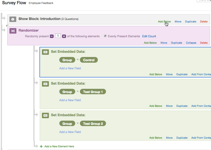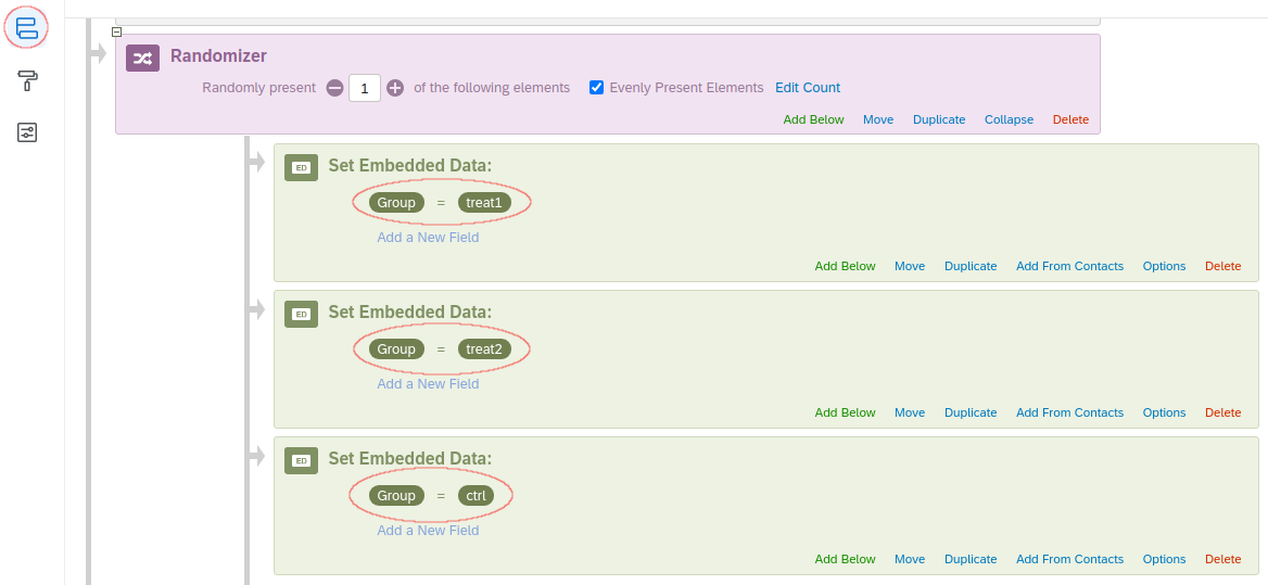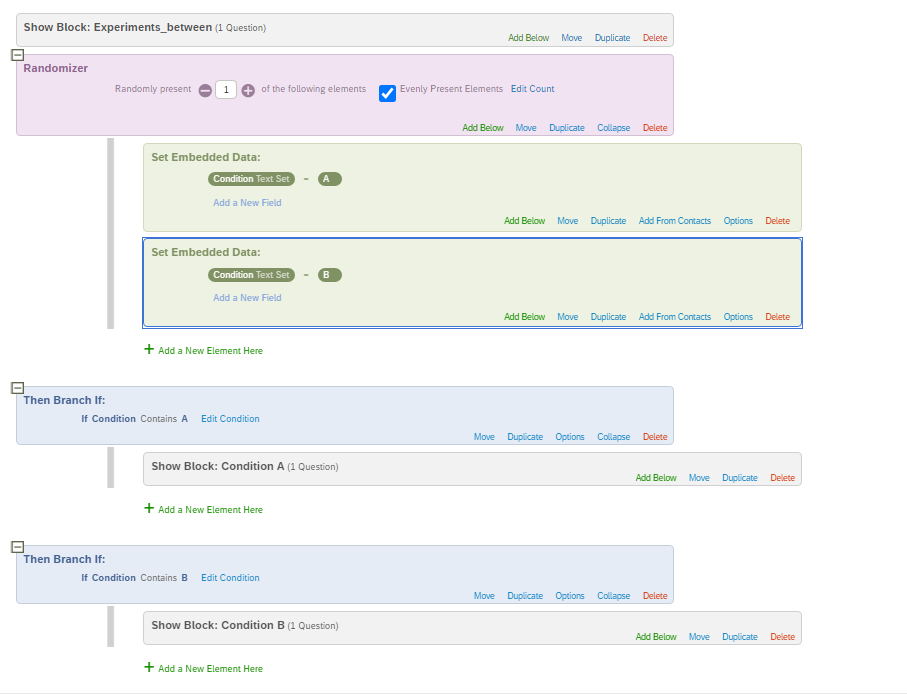 Here is a short description of how to set up a randomizer in Qualtrics, so that your participants are going to be assigned either to specific conditions.