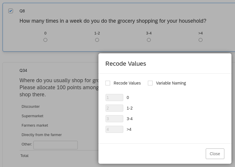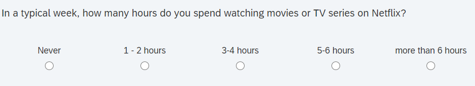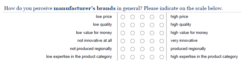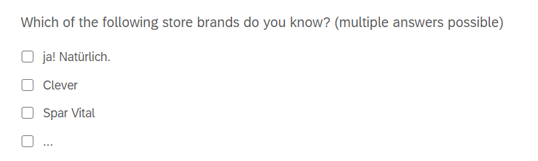 After the introduction, it is usually a good idea to collect some information about the topic of your survey that you can later use to present descriptive statistics. At the same time, this is a good opportunity to familiarize the participants with the survey topic. For example, in a survey about store brands, you may show some logos of store brands and ask the respondents which store brands they know or purchase using a multiple-choice question.