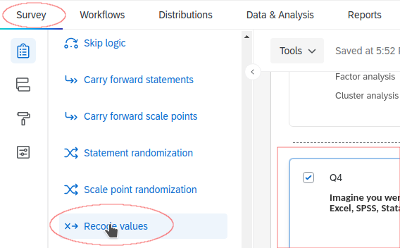 A questionnaire creation in Qualtrics starts with creation of a Qualtrics project. Each project consists of a survey, distribution record, and collection of responses and reports. There are three ways to create a questionnaire. First, you can create a new survey project from scratch. Second, you can create a new questionnaire from a copy of an existing questionnaire. Eventually, you can create surveys from a template in your Survey Library, or from an exported QSF file.