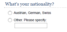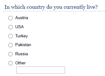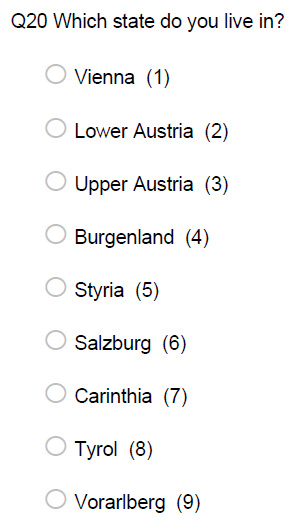 For some questions predefined answers are provided but participants can also fill in their own answers. In the data this will lead to multiple columns being added for such a question. Below we see the countries the participants were from. We had checkboxes for “Austria” and “Germany” and a text field for all other countries. We can use the case_when