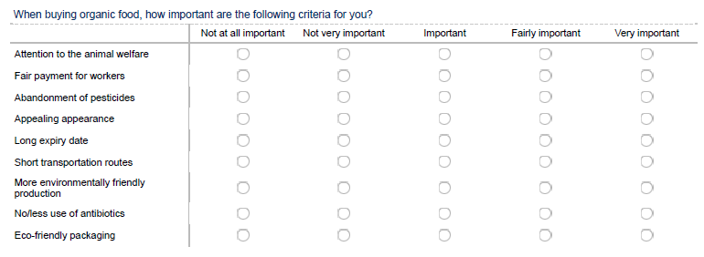You should also think about the respondents’ experience. For instance, it is usually better to spread the content over more short pages than have fewer long pages. Generally, respondents are reluctant to read and fill out long questionnaire pages. Hence, long pages will lead to a higher dropout rate. In order to reduce the dropout rate, you should state how long the survey will approximately take, in the introduction of the questionnaire.