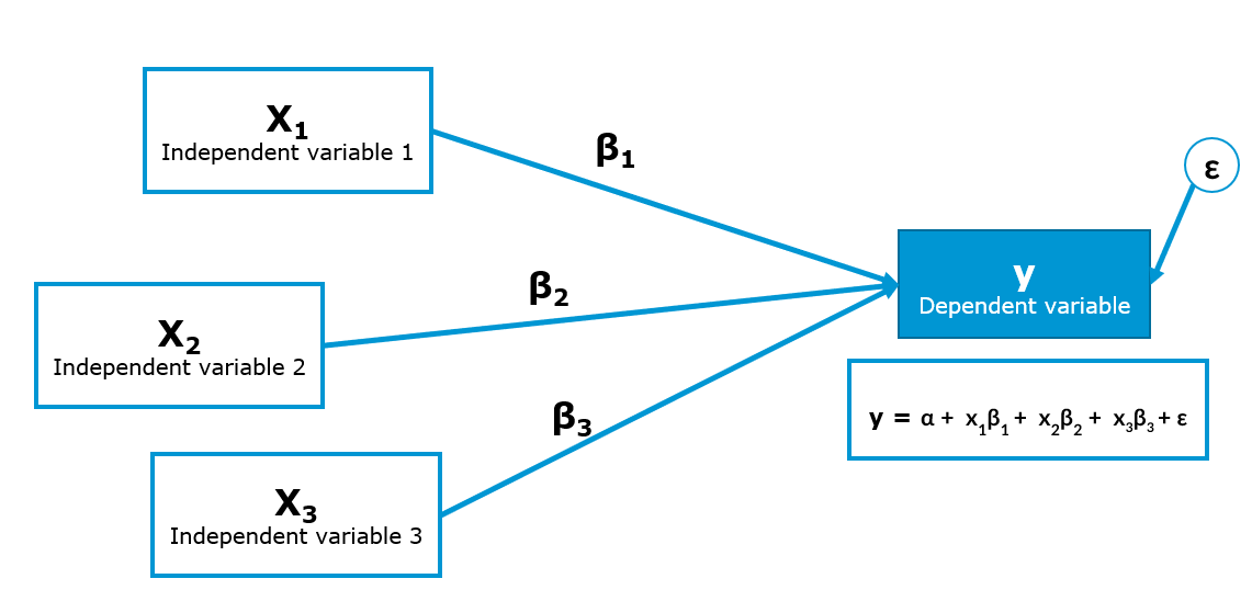 If you would like to estimate the effects of multiple independent variables on one dependent variable as described above, you would need to use a regression model. In this case, you particularly have to decide on: