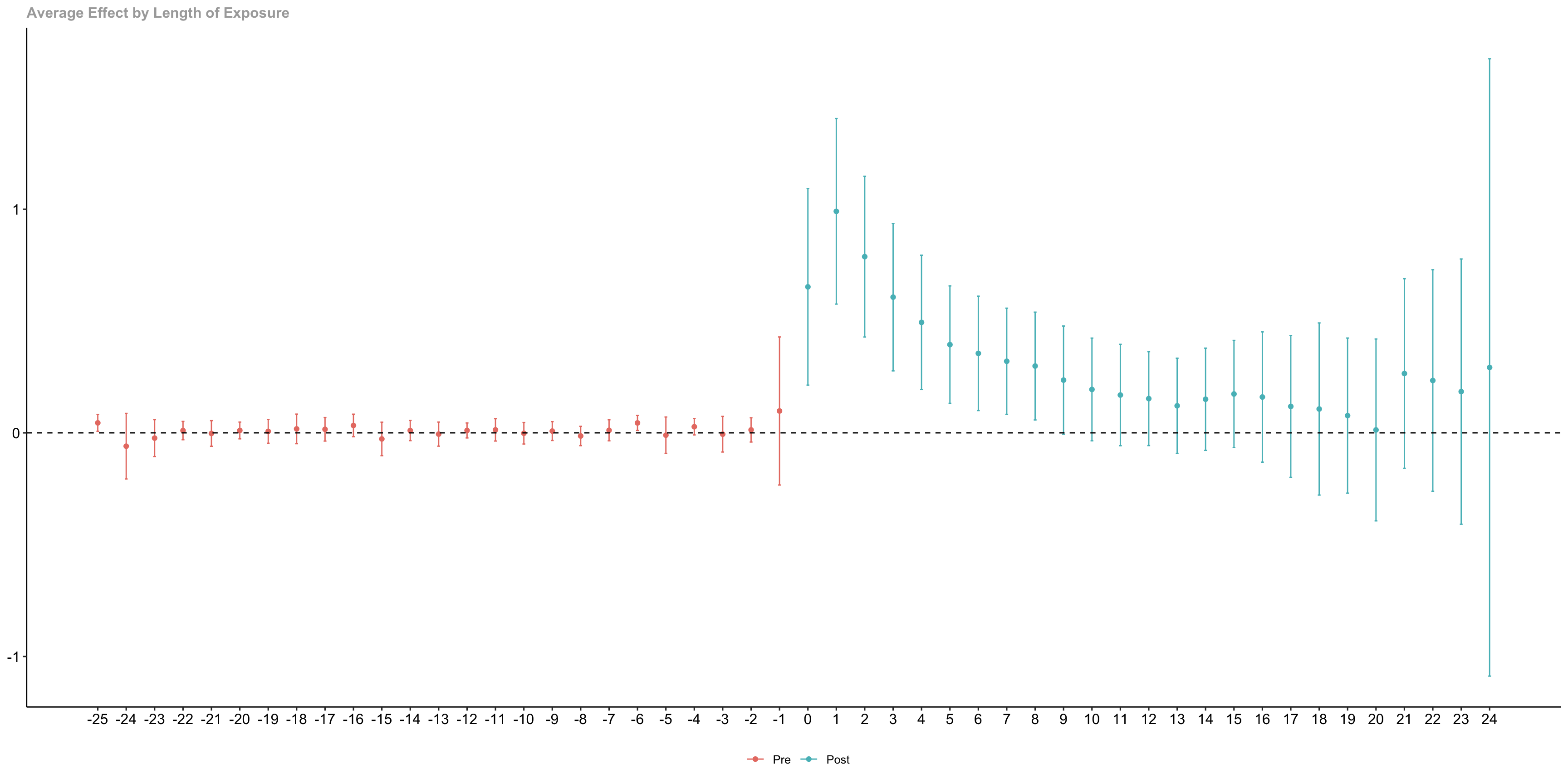 Goodman-Bacon, Andrew. 2021. “Difference-in-Differences with Variation in Treatment Timing.”Journal of Econometrics, Themed issue: Treatment effect 1, 225 (2): 254–77. https://doi.org/10.1016/j.jeconom.2021.03.014.