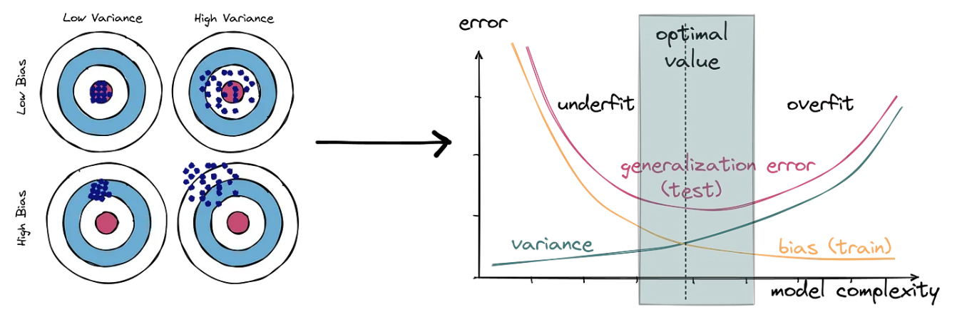 overfitting: in addition to the signal the model also picks up on the noise of the data used to “fit” (train) the parameters
